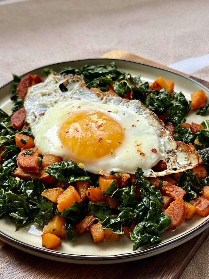 Chorizo, Sweet Potato and Kale Breakfast Hash
